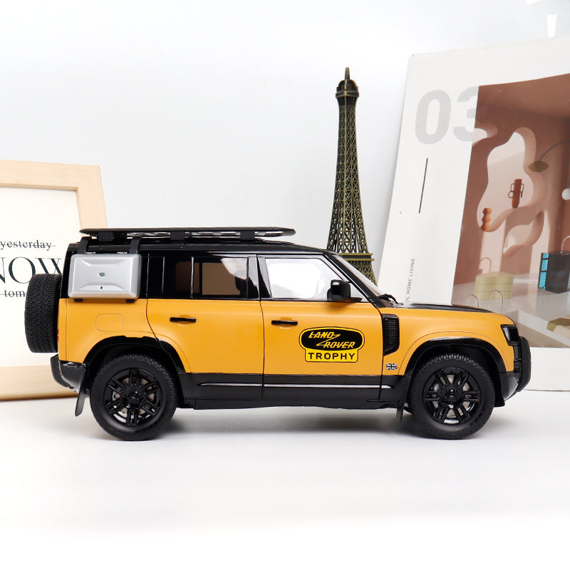 From the rugged legacy of the Land Rover Defender, this Trophy Edition 110 in 1:18 scale by Almost Real stands as a tribute to off-road adventure. Featuring a bold yellow/black expedition livery, high-detail manufacture, and fully functional elements including opening doors, hood, and tailgate, this model mirrors the spirit and engineering of its full-sized counterpart.